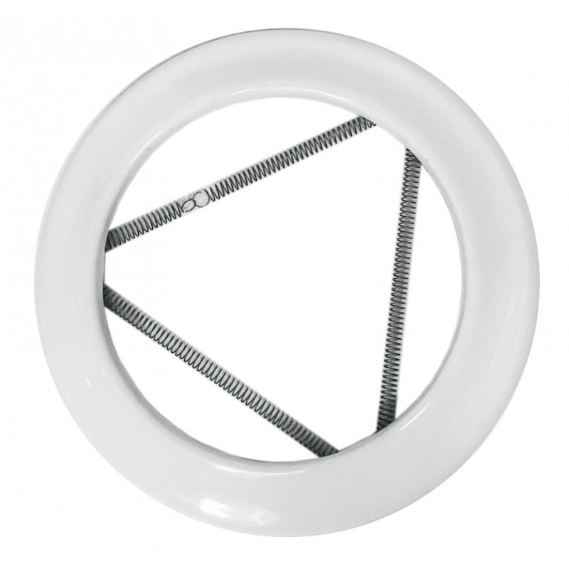 La rosace à ressort Ø111 mm blanc permet d’obtenir une finition nette et élégante autour du conduit de fumée à la sortie du mur ou du plafond. Cet accessoire de fumisterie émaillée dissimule les irrégularités du percement tout en assurant une transition propre entre le tuyau et le support.